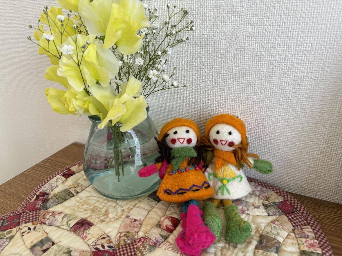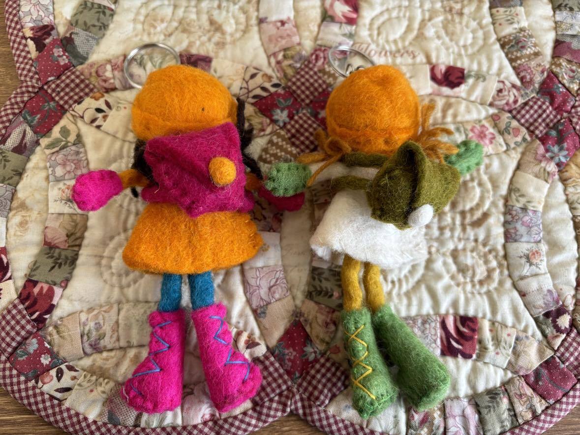 ネパール製フエルトのキーホルダーです。ドールは15センチ〜116センチ。手作りなので表情などがひとつひとつ微妙に違います。その旨ご了承ください。